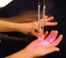 Based on Chinese medicine, we use tuning forks and color lights on acupuncture command points. It's faster and more effective than needles - with no pain.